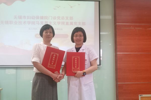 活动中,马克思主义学院直属党支部与无锡市妇幼保健院门诊党总支签订了共建协议,约定在习近平新时代中国特色社会主义思想和党的二十大精神指导下,共同探索党建工作新路径,共促组织建设,共育党员队伍,共享发展成果。双方工会协商加强联动,无锡市妇幼保健院门诊分工会将利用医疗保健相关资源,为我校师生提供健康咨询、诊疗支持、体检服务、健康及生命教育等定制化、特色化、专业化健康服务。