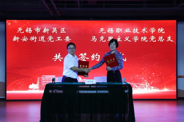 在活动中,赵后起和焦柯寒分别介绍了学院和街道的基本情况、党建经验与特色亮点。双方就如何通过发挥各自优势实现双向赋能,共促高质量发展进行了深入研讨交流。在活动现场,赵后起和何勇洲代表双方签订共建协议书,约定通过“组织发展共促、党员队伍共育、发展成果共享”等形式加强校地党建合作,促进党建工作创新、党建与业务双融双促,提升新时代基层党组织战斗力、创新力、影响力。宋瑞超与焦柯寒共同为无锡职业技术学院马克思主义学院、新安街道校地共建实践基地揭牌,校地共建实践基地是双方整合优势资源打造的集宣传、教育、交流、培训四位一体的合作载体,是双方努力构建校地多元协同共同体的积极尝试。
