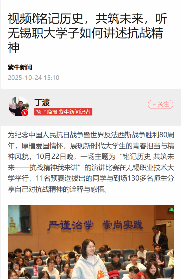 【紫牛新闻】视频|铭记历史,共筑未来,听无锡职大学子如何讲述抗战精神